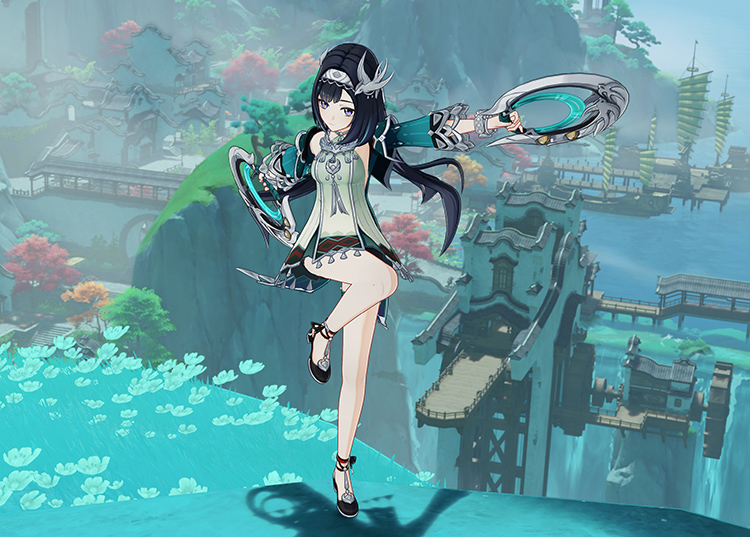 Múa Tiễn Nguyệt Hoàn và thực hiện tối đa 4 lần tấn công, gây Sát Thương Nguyên Tố Phong.